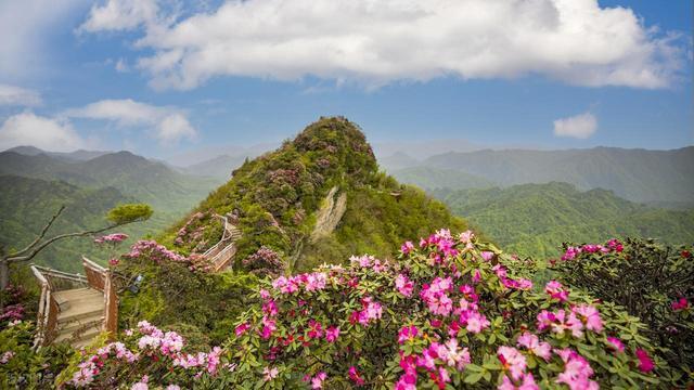 淌若 5 月来天台,千万别错过华顶国度丛林公园的云锦杜鹃!几百亩古杜鹃林绵延山间,紫红、粉红、粉白的杜鹃花开得热干扰闹,花团锦簇灿若云霞,这亦然 “云锦杜鹃” 名字的由来。
