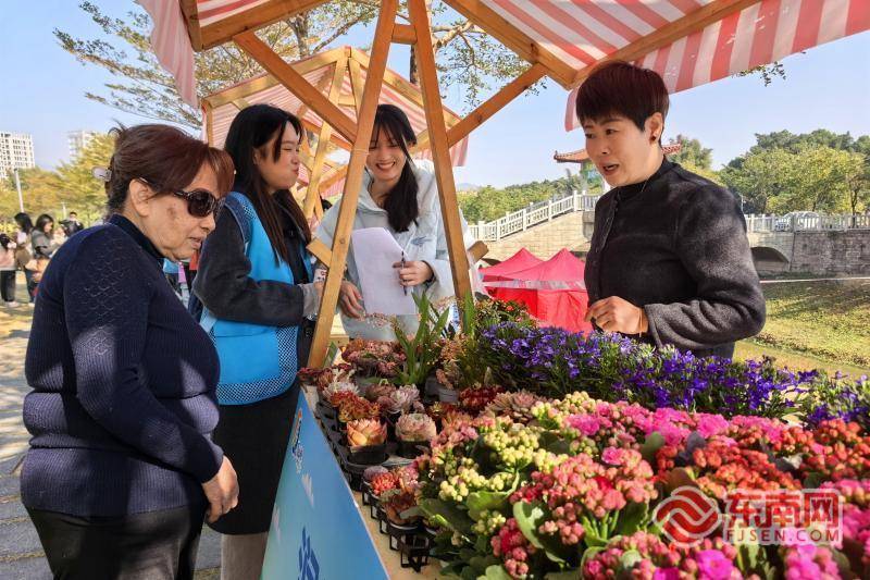 展位上的鲜花眩惑市民购买(东南网记者 刘玮 摄)