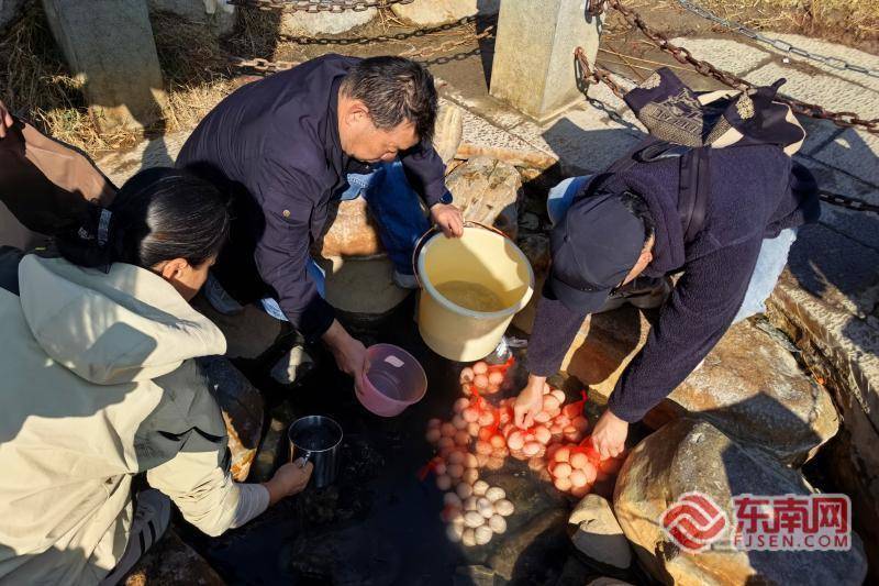 市民们在温泉池里煮鸡蛋(东南网记者 刘玮 摄)