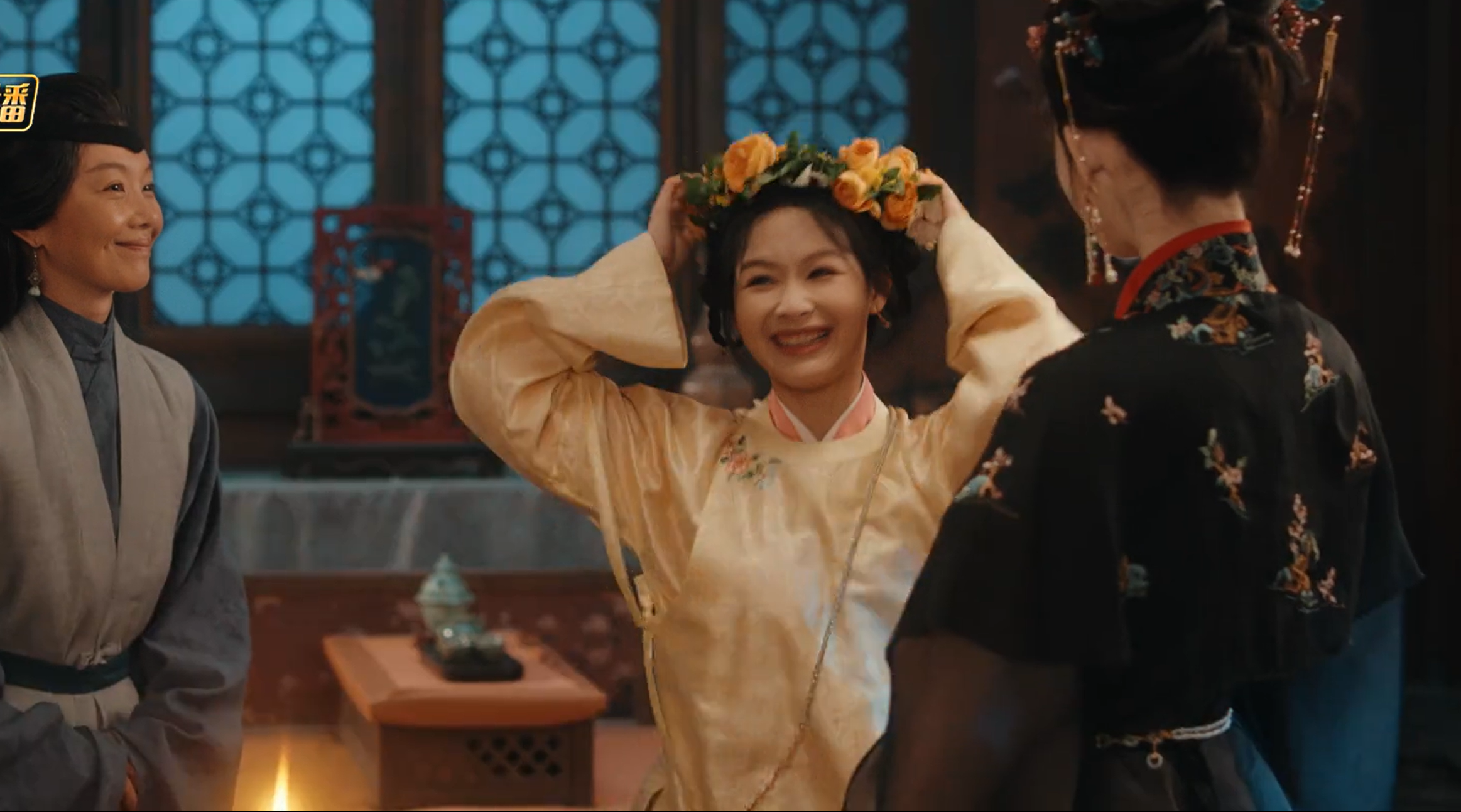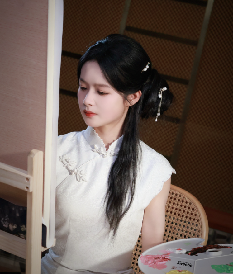 《玉茗》里她演的是荣筠纨,荣家六密斯,女主的妹妹,一个心智像小孩,被四姐姐凌暴的小妹,不需要何等有深度的饰演,尽量演无邪可人就行了。